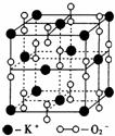 高温下,超氧化钾(KO2)晶体结构与NaCl相似,其晶体结构的一个基本重复单元如右图所示,已知晶体中氧的化合价可看作部分为0价,部分为-2价。则下列说法正确的是 ( )