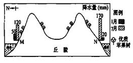 B.M地位于来自海洋的冬季风迎风坡,冬季降水多于N地