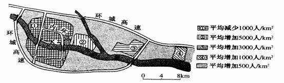 A、该城市总人口明显减少 B、③区商业服务等级最高、种类最多