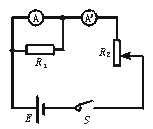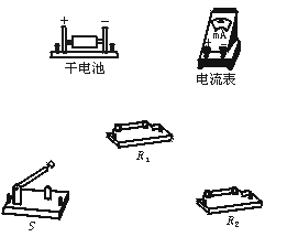 8.(10分)(2002年广东高考试题)现有器材:量程为10.0 mA、内阻约30 Ω~40 Ω的电流表一个,定值电阻R1=150 Ω,定值电阻R2=100 Ω,单刀单掷开关S,导线若干.要求利用这些器材测量一干电池(电动势约1.5 V)的电动势.