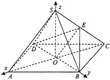 方法二:(1)证明:连AC交BD于点O,连结SO,OE. 根据正四棱锥的性质,得SO⊥面ABCD. 以OA、OB、OS所在射线分别作为非负x轴、非负y轴、非负z轴建立空间直角坐标系.…………1分