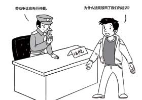 C、建议劳动者先向劳动争议仲裁委员申请仲裁,对仲裁不服,再向人民法院提起诉讼;