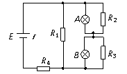 12、如图所示,灯泡A、B都能正常发光,后来由于电路中某个电阻发生断路,致使灯泡A比原来亮一些,B比原来暗一些,则断路的电阻是[ ]