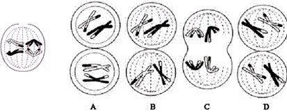 下左图为某细胞减数第一次分裂后期图,选出该细胞处于减数第二次分裂中期图像( )