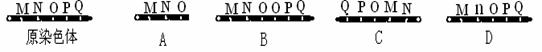 已知某物种的一条染色体上依次排列着M、N、O、P、Q五个基因,如图列出的若干种变化中,不属于染色体结构发生变化的是( )