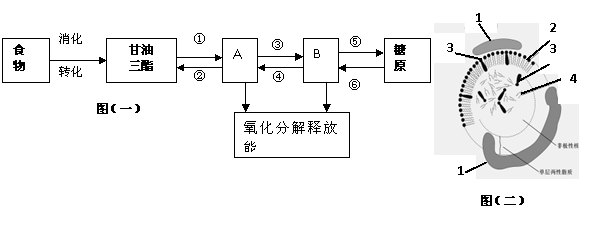 (4)正常人体中,血液中甘油三酯的来源和去路是基本维持平衡的。由图(一)知,甘油三酯来源(途径)主要有 ;去路(途径)主要有 ________________。