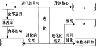 35.( 9分) 生命的演化经过了亿万年的历史,对生命演化的解释,目前普遍被接受的是经典的达尔文进化理论及现代进化理论。以下为现代生物进化理论的概念图,请据图回答: