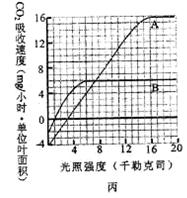 (4)丙图表示A、B两种植物的光合速度与光照强度的关系。