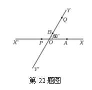 22.如图所示,有两条相交成60°角的直路XX′和YY′,交点是O,甲、乙分别在OX、OY上,起初甲离O点3 km,乙离O点1 km,后来两人同时用4 km/h的速度,甲沿XX′方向,乙沿Y′Y的方向步行.