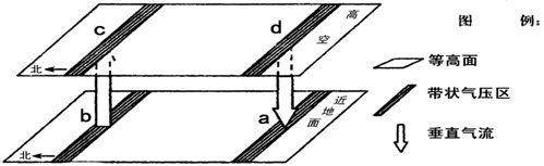2.若图示地区位于北半球。理论上 c、d 之间的稳定水平气流方向(风向)为