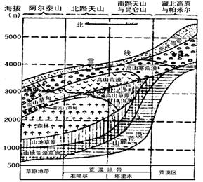 读“新疆地区山地植被垂直带结构图”(图 8 ) ,回答 15-16 题。