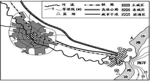 (3)若在该市 A 、 B 两处布局港口和旅游度假区,请提出合理的布局方案,并简述理由 。 ( 5 分)