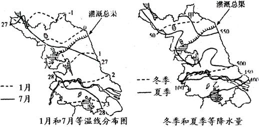 ( 1 )比较江苏省.月和 7 月等温线分布的不同点,并分析其原因 。( 4 分)