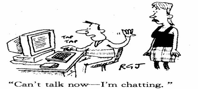 Modern technology has many advantages. While we enjoy the fun and convenience of the Internet, we also experience some new problems. This caricature describes one of them.