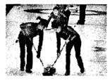 比赛中夺冠的一个场景.比赛时两名队员在冰壶前方“刷冰”,