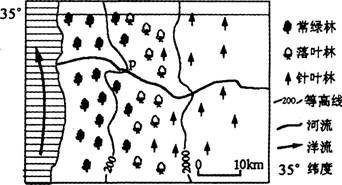图2示意某大陆局部地区自然景观分布,回答3-4题。