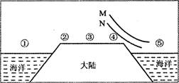 图8是沿某一理想大陆45ºN所作的剖面示意图,回答18--19题。