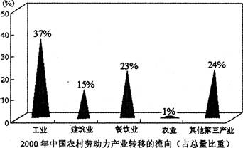 (1)结合图13,简述2000年中国农村劳动力产业转移的流向特征。(2分)