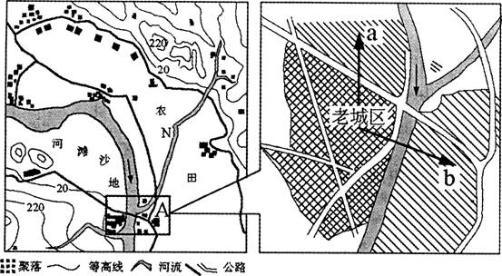 (2)图17是该小组虚拟的A城规划图,该城计划向a、b两个方向发展。结合图分析:与b相比,a方向发展的优势。(3分)