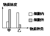 甲乙两种物质在细胞内外的浓度情况如右图所示。