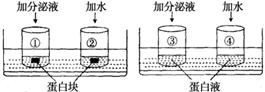 猪笼草是一种食虫植物,为了验证猪笼草分泌液中有蛋白酶,某学生设计了两组实验,如图所示。经35℃水浴保温一段时间后,③、④中加入适量双缩脲试剂,①、②不加任何试剂,下列组合能达到目的的是