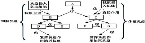 34. (7分)下图是人体特异性免疫的过程示意图(序号表示过程,字母表示细胞),请回答。