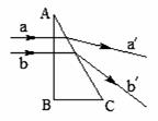 如图所示,两平行细光束a、b从空气中垂直射入直角玻璃三棱镜的AB面,对应的折射光线为a′、b′,且a′、b′有发散的趋势,则下列说法正确的是: