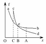 分子力的大小,两条曲线分别表示斥力或引力的大小随两分子间距离变化的关系,e为两曲线的交点,则: