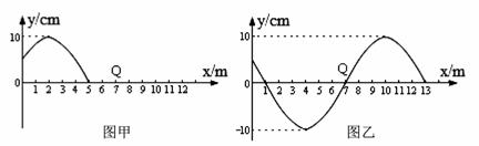 17.如图甲是一列沿x轴正方向传播的简谐横波在t=0时刻的图象,此刻x=5m的质元刚开始振动。如图乙是该波在t=0.2s时刻的波的图象,已知这段时间内x=7m的质元Q有两次到达波峰的经历,则该波: