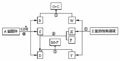 29.(16分)在一定条件下(不需添加另外的反应物),经不同的化学反应,可实现如下图的各种变化。其中,反应①、②属于非氧化还原反应。正盐A分解得到三种气体。X、F和Y为单质,其余为化合物。在高科技领域中常用液态F制造低温环境。Y常用来制取漂白粉。