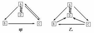 C.乙图中因捕食关系建立的食物链中,能量最少的是B所处的营养级