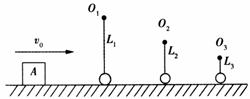 21.如图所示,滑块A的质量m=0.01kg,与水平地面间的动摩擦因数μ=0.2,用细线悬挂的质量均为m=0.01kg的小球沿水平面排列,且恰与水平面接触。A与第1只小球及相邻两小球间距离均为s=2m,线长分别为L1、L2、L3…(图中只画出三只小球,且小球可视为质点),开始时,滑块以速度v0=10m/s沿水平方向向右运动。设滑块与小球碰撞时不损失机械能,碰撞后小球均恰能在竖直平面内完成完整的圆周运动并再次与滑块正碰,重力加速度g=10m/s2。下面说法正确的是