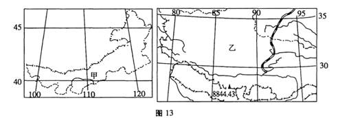27.读“我国两大自治区位置示意图”(图13),填表比较两自治区气候及其对农业生产的影响。(15分)