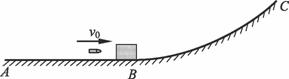 22.(16分)如图所示,一质量为0.99kg的木块静止在水平轨道AB的B端,水平轨道与半径为10m的光滑弧形轨道BC相切。现有一质量为10g的子弹以500m/s的水平速度从左边射入木块且未穿出。已知木块与水平轨道的动摩擦因数μ=0.5,g=10m/s2。求: