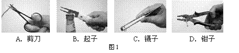 5. 如图1所示,使用中属于费力杠杆的工具是························································· ( )