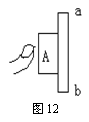 21. 如图12所示,木块A与木块ab的接触面积为0.5dm2,木块A重3.2N,手指用力2.4N,则木板ab受到的压力为 N,受到的压强为 Pa,木块此时的摩擦力是_______N。
