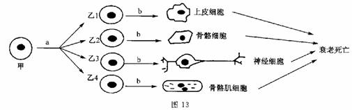 24.图13为人体某早期胚胎细胞所经历的生长发育阶段的示意图,图中甲、乙为两个阶段的细胞,a、b表示发育变化的过程。下列叙述正确的是 ( )