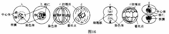 27.(8分)图16是动物体细胞有丝分裂的模式图,但是其中有两幅图是错误的。请据图回答: