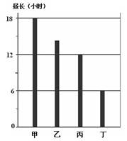 下图为同一日期甲、乙、丙、丁四个地点的昼长状况,据此回答1题