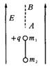 4、如图所示,质量为m1、带有正电荷q的金属小球和质量为m2、不带电的小木球之间用绝缘细线相连后,置于竖直向上、场强为E、范围足够大的匀强电场中,两球恰能以速度v匀速竖直上升.当小木球运动到A点时细线突然断开,小木球运动到B点时速度为零,则( )