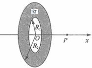 10.如图所示,为一个内、外半径分别为R1和R2的圆环状均匀带电平面,其单位面积带电量为