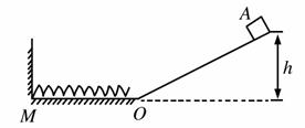 从坡道顶端由静止滑下,进入水平面上的滑道,经过O点时无机械能损失.为使A制动,将轻弹簧的一端固定在竖直墙上的M点,另一端恰好位于滑道的末端O点.已知在OM段,物块A与水平面间的动摩擦因数均为μ,其余各处的摩擦不计,重力加速度为g,试求: