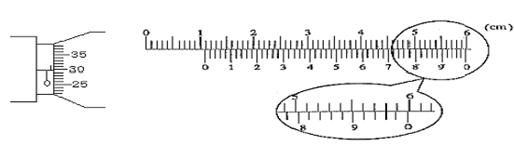 (1).(2分)图中游标卡尺(游标尺上有50个等分刻度)读数为____________cm;螺旋测微器的读数为____________cm