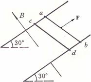 (12分)如图所示,平行且足够长的两条光滑金属导轨,相距0.5m,与水平面夹角为30°,不计电阻,广阔的匀强磁场垂直穿过导轨平面,磁感应强度B=0.4T,垂直导轨放置两金属棒ab和cd,长度均为0.5m,电阻均为0.1Ω,质量分别为0.1 kg和0.2 kg,两金属棒与金属导轨接触良好且可沿导轨自由滑动.现ab棒在外力作用下,以恒定速度v=1.5m/s沿着导轨向上滑动,cd棒则由静止释放,试求: (取g=10m/s2)