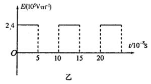 的带负电粒子(其重力不计)以v0=8×105m/s速度从两板中间沿与板平行的方向射人偏转电场,进入偏转电场时,偏转电场的场强恰好按图乙所示的规律变化,粒子离开偏转电场后进入匀强磁场,最终垂直磁场右边界射出.求: