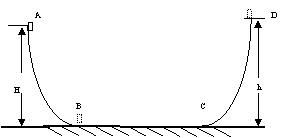 (12分)如图,ABCD为一竖直平面的轨道,其中BC水平,A点比BC高出10米,BC长1米,AB和CD轨道光滑。一质量为1千克的物体,从
