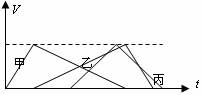 甲、乙、丙三辆小车沿平直公路运动的速度图象如下图所示,由图中可知,在它们运动过程中相等的物理量是 ( )