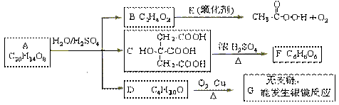 (6) G无支链,能发生银镜反应,可知G为丁醛,所以D为丁醇,结构简式为:CH3CH2CH2CH2OH。(3分)