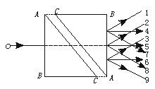 3.(2003年春考理科综合能力试题)一玻璃棱镜的横截面是等腰△abc,其中ac面是镀银的,现有一光线垂直于ab面入射,在棱镜内经过两次反射后垂直于bc面射出.则