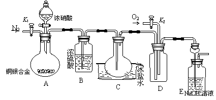 (4)实验测得如下数据:实验前,Cu、Ag合金的质量:50g;浓硝酸:40mL 13.5mol/L;实验后A溶液:V=40mL,c(H+)=1.0mol/L。假设反应中HNO3既无挥发也无分解,则: